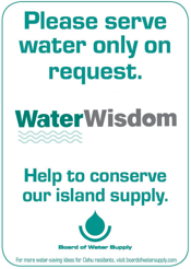 Be water sensible. Help us conserve Oahu's water supply. Please serve water only on request.