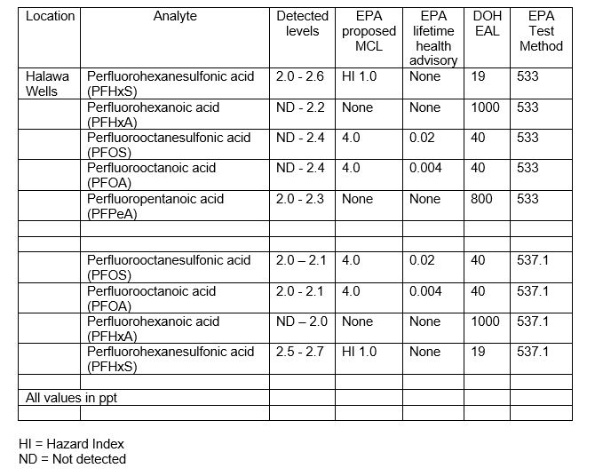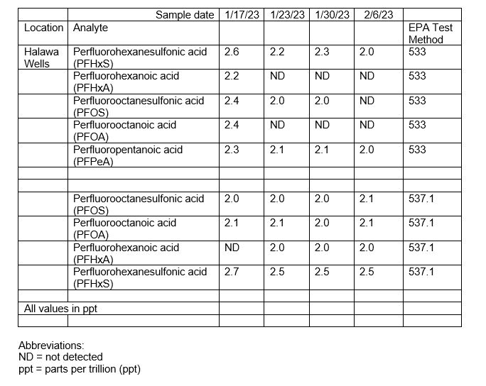 Manager and Chief Engineer Ernest Lau stated, “We take our kuleana to provide safe drinking water to our community seriously and will continue to test for PFAS chemicals and monitor for any changes.”